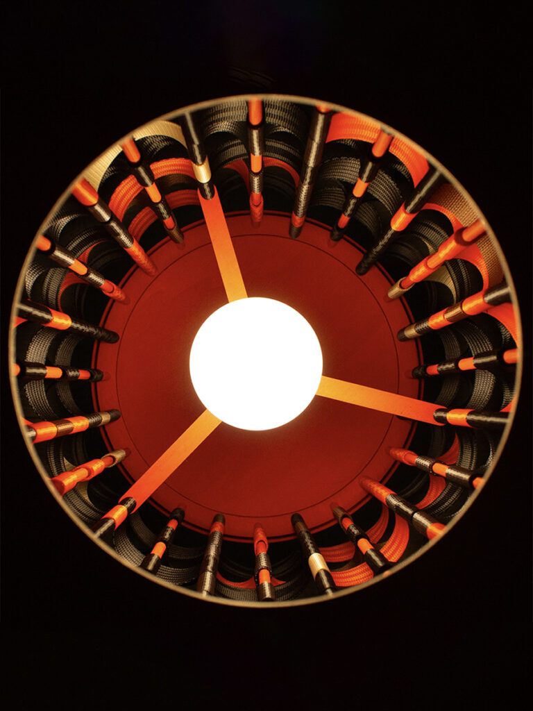 De vrijheid van handmatig vlechten maakt het mogelijk om materialen te transformeren door bewuste keuzes in kleur, textuur en compositie. Vlechten biedt de mogelijkheid om lichtheid, transparantie en beweging te creëren, zowel binnen als buiten het object. En als alle materialen kunnen worden betoverd door vlechtwerk, waarom dan licht niet als ‘materiaal’ zien?