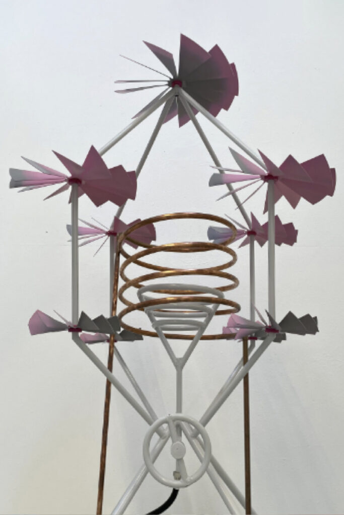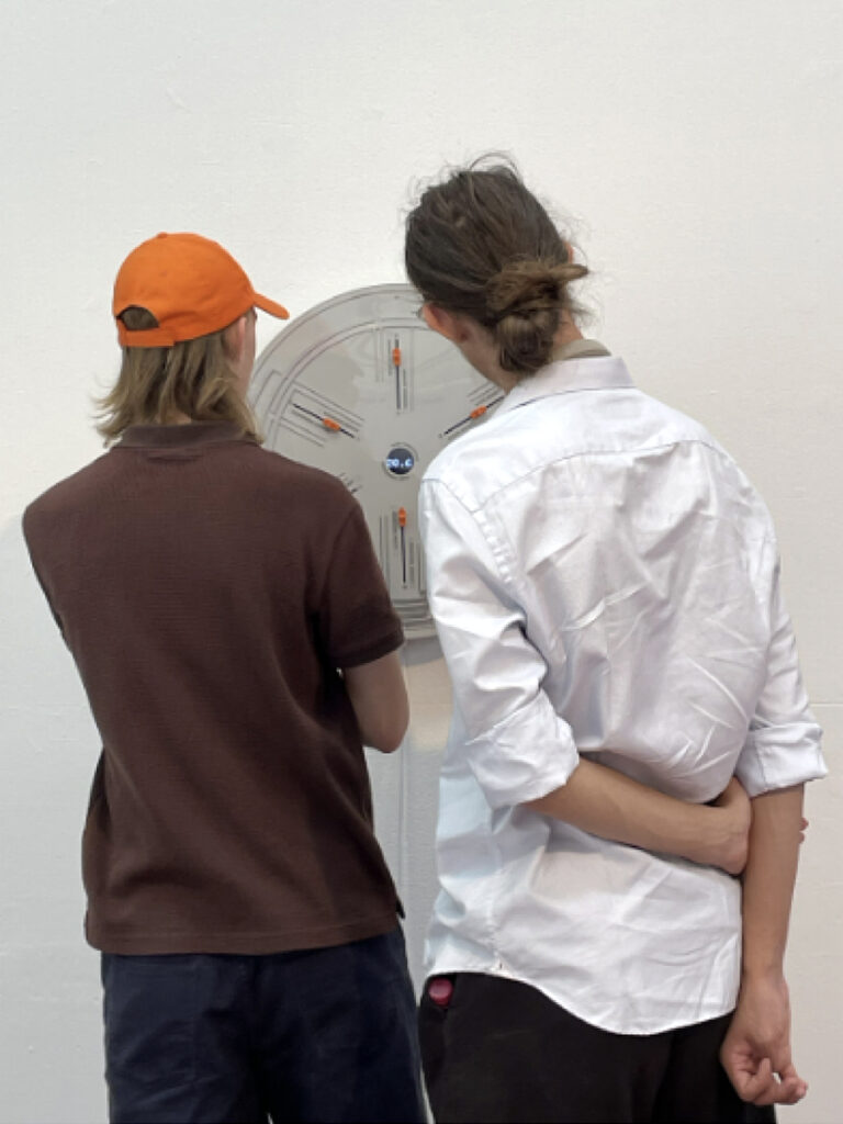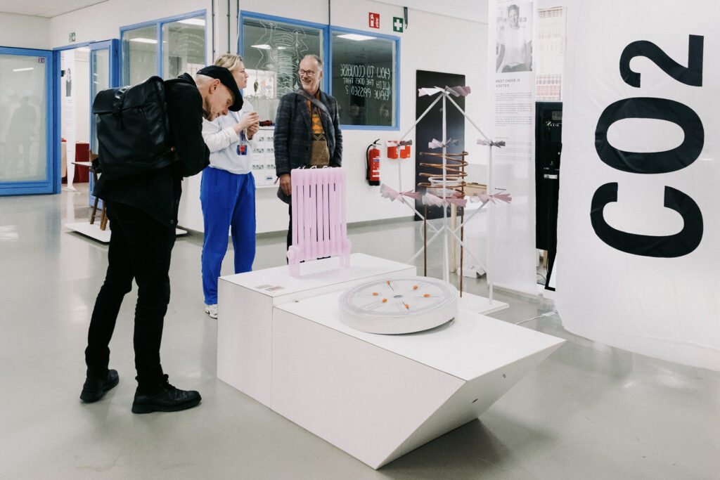 Podcasts over klimaatverandering brachten Lotte tot het inzicht: we vinden allemaal dat er iets moet gebeuren, maar handelen er niet naar. “We weten dat het speelt, maar het voelt niet urgent,” aldus Lotte. “We denken dat het ver weg is, dat het nog wel meevalt, dat anderen het oplossen.” Daarom ontwikkelde ze voor haar afstudeerproject Heet Onder Je Voeten objecten die onzichtbare technische processen thuis zichtbaar maken. Een radiator in de vorm van een kaars, een installatie met draaiende molentjes. Elk object legt het verband bloot tussen gedrag, energieverbruik en de verborgen techniek erachter. De thermostaat bijvoorbeeld: door dit vertrouwde voorwerp radicaal te veranderen, zie je direct wat dat ene graadje hoger tot gevolg heeft.