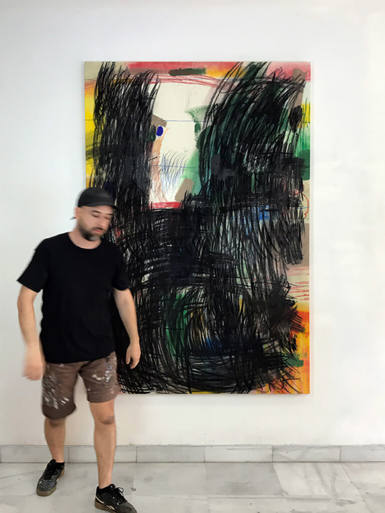 Sergio Gómez (Spanje) Sergio Gómez, ook bekend als SRGER, woont en werkt in Sevilla. Hij haalt inspiratie uit sporen en materialen die hij op straat vindt en vertaalt die naar kleurrijke vormen, krassen en symbolen. Zijn werk beweegt zich tussen papier, doek, muren en installaties, waarbij hij vaak letterlijk de grenzen van het kader doorbreekt en zijn schilderingen laat versmelten met hun omgeving.