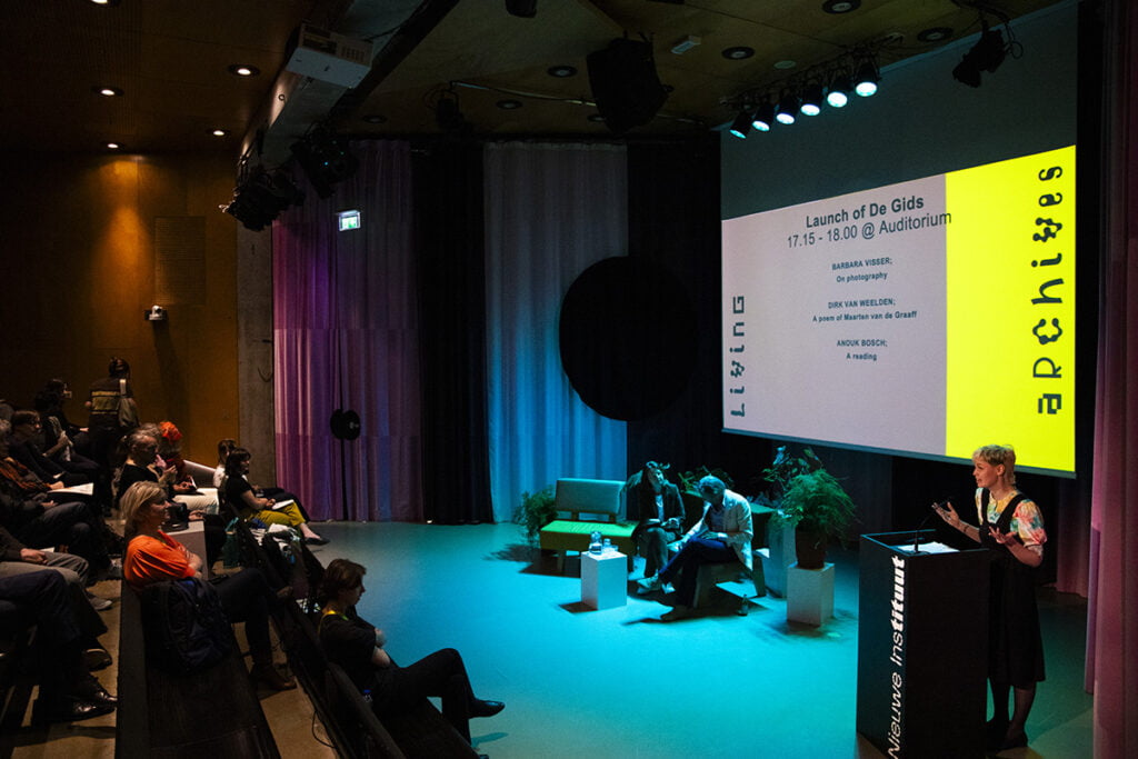 Van 17:00 – 18:00 vond de lancering plaats van een speciale archief-georiënteerde uitgave van De Gids in het auditorium, met optredens van dichters en schrijvers. De dag werd afgesloten met een feestelijke borrel in het café en een avondprogramma georganiseerd door Arianne en haar team, met modeontwerper Bobby Kolade.