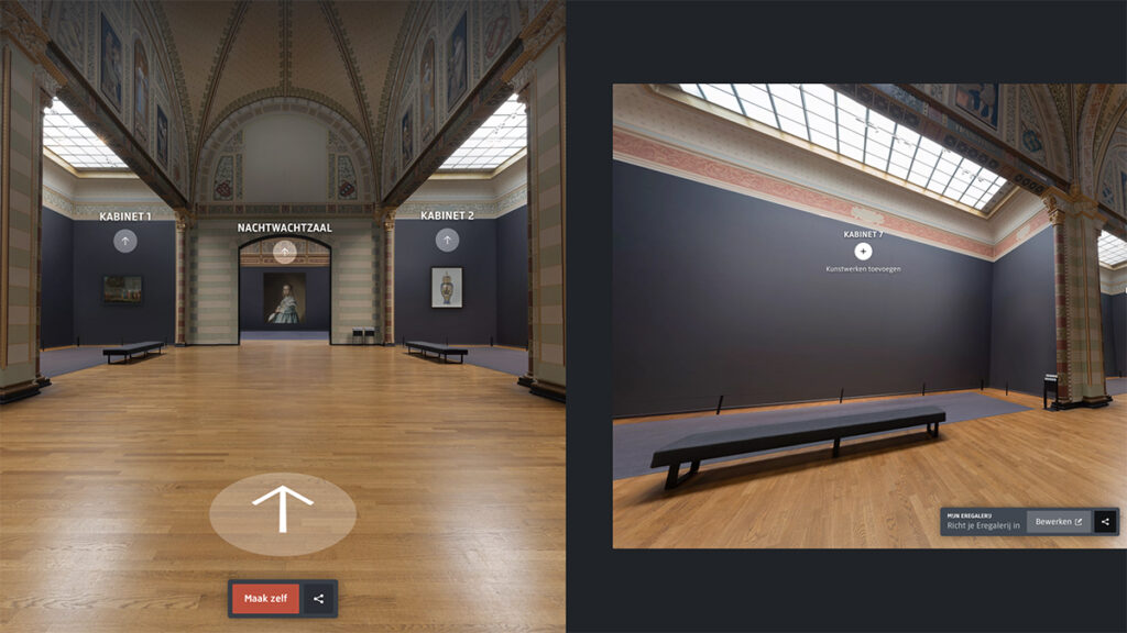 Bezoekers kunnen uit dit rijke aanbod persoonlijke verzamelingen samenstellen, objecten vergelijken en zelfs een eigen interactieve videoclip maken. In een virtuele 360-graden weergave van de Eregalerij kan iedereen een persoonlijke selectie meesterwerken tentoonstellen.