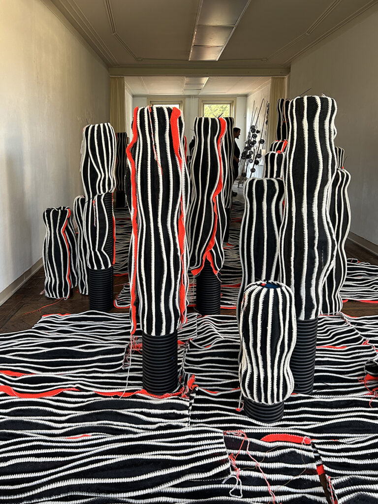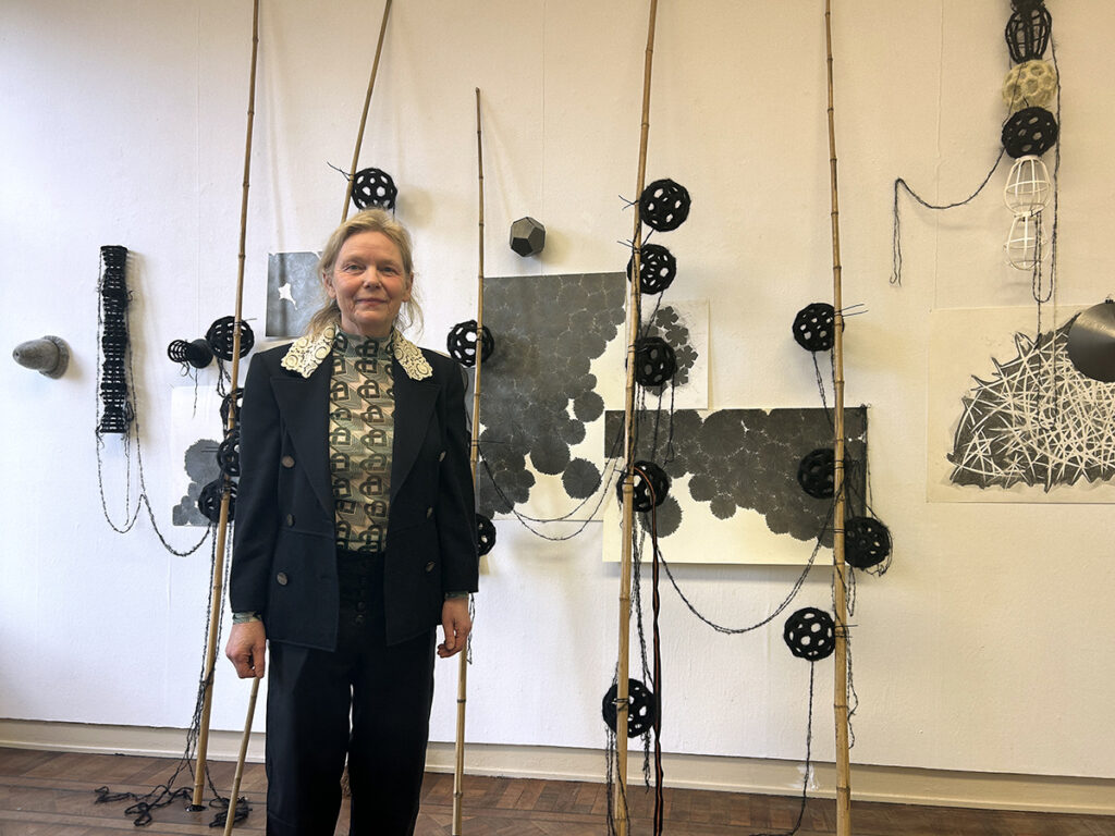 De ruimtes waarin ze haar installaties bouwt, beïnvloeden en bepalen de richting waarin het werk zich ontwikkelt. Ze is een verbinder en de zoektocht is als het eindeloze Tij.
