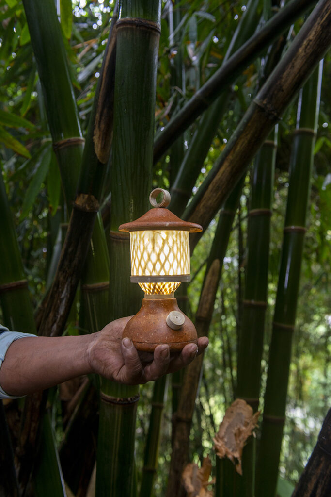 Since the winter of 2024, I have been working in Indonesia with Adhi Nugraha of Cowka, Ratna Djuwita (materials designer from Yogyakarta and founder of Mater Designlab) and Hilwa Azzahra (designer from Sulawesi) on a project in which we are repurposing cow dung and tofu waste into a wearable lamp. The basic construction consists of a fine weave of local bamboo – a traditional and indigenous material that shapes the product and literally connects the two waste materials. Both cow manure and liquid tofu waste are a growing environmental problem in Indonesia: they pollute ecosystems, degrade soil and pose a threat to people and nature. In this project, they are not seen as a burden, but as a valuable resource. The result is a lamp that is not only lightweight, aesthetic and circular, but also timeless in form and meaning – a local answer to a global problem.