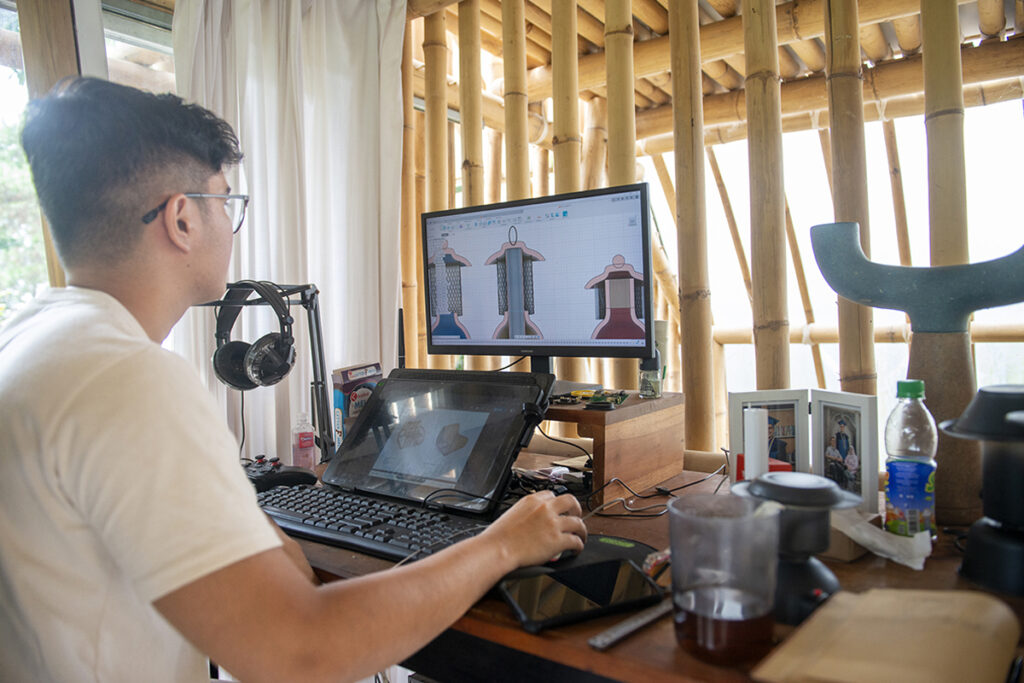 The collaboration of Gooda Gaado with Adhi Nugraha, and Cowka as the micro-factory, has been the key to the success of this project. The Cowka collection, which focuses on cow dung, was integral to the development of the lamp. Throughout the project, we have relied on Adhi’s expertise, his team, and the studio’s resources.