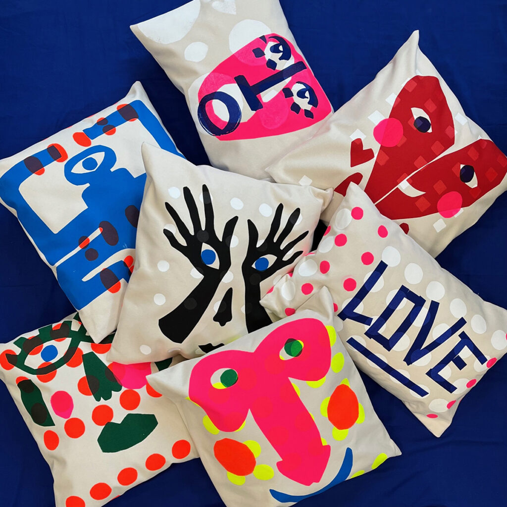 Manual Screenprinting: Each piece of fabric is hand-printed in their own atelier, ensuring every cushion and textile is a one-off original.
