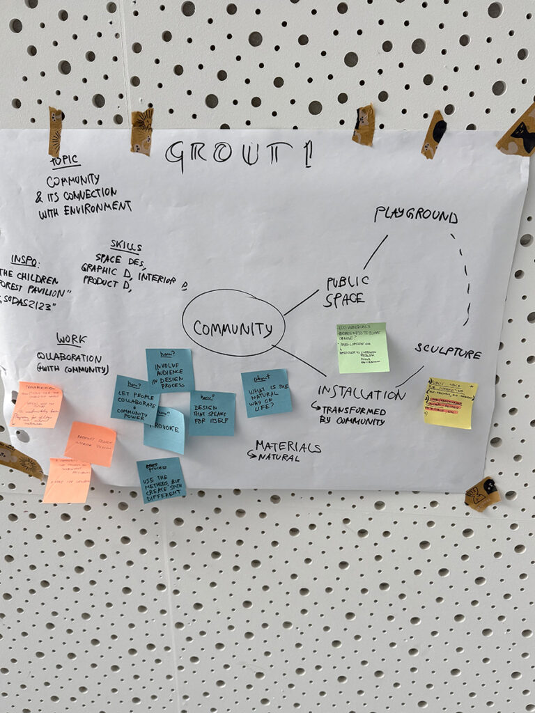 We examined the career paths of designers who have successfully integrated sustainable practices into their work. For example, Dutch Design Award Winner Christien Meindertsma has, since her graduation project in 2003, been revalorizing wool – most recently developing the 3D wool printer, the Wobot, for large-scale projects. Similarly, Mexican/UK-based Dutch Future Food Design Award winner Fernando Laposse has innovated with new materials for furniture by repurposing waste streams from indigenous corn, in collaboration with local farming communities. These inspirational examples sparked discussions among the sixteen students, who explored potential collective missions through fictional case studies – demonstrating that from individual dreams can emerge powerful collaborative endeavors.