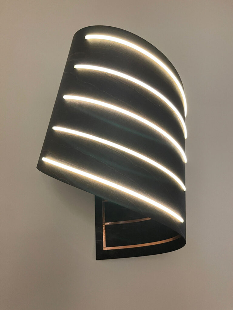Rick is an innovator who dares to create new forms that naturally emerge from the application of innovative technology: in his new design, Traces, he uses a wiring system commonly found in the automotive industry. The wiring consists of a thin, flat strip of copper that reflects beautifully. Form follows innovation. A solo expedition is truly about spreading your wings; the upgraded version of the Cam Van is the symbolic embodiment of this adventure.