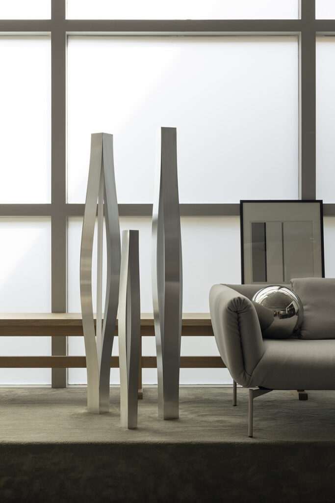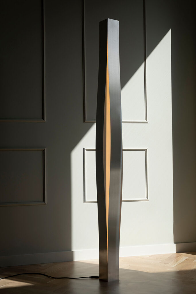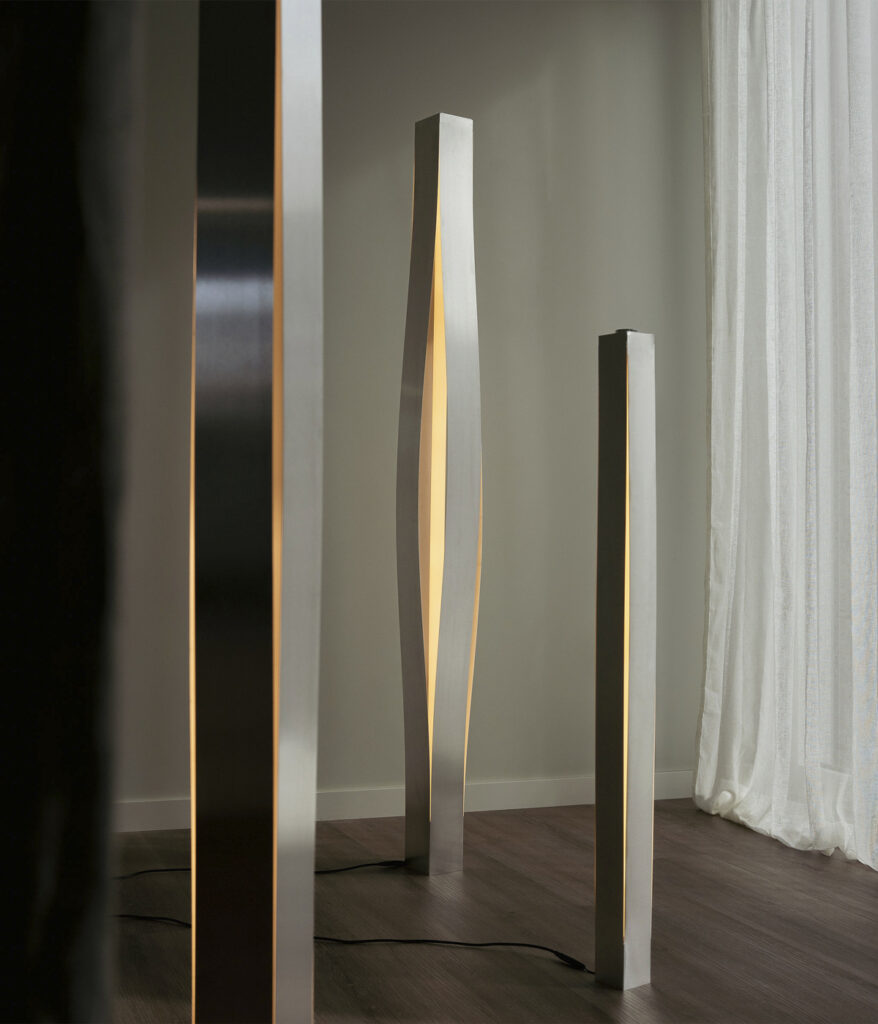 A new series of flexible metal lamps, where form emerges from the natural tension of the material—set and shaped by the user.