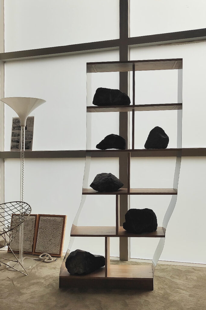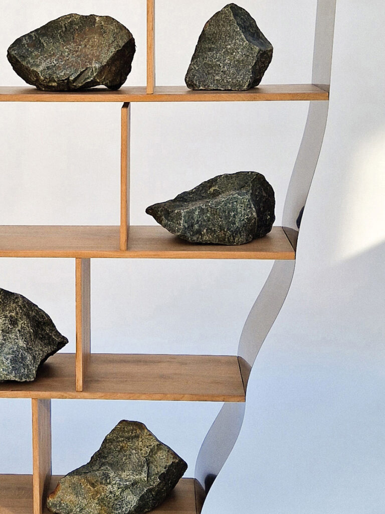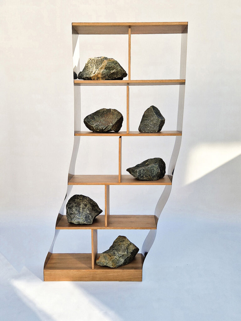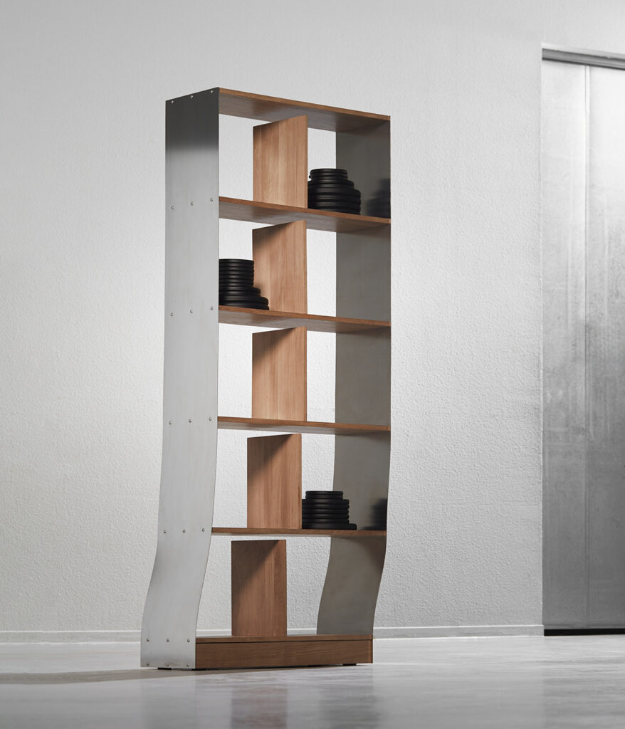 This cabinet plays with the idea that furniture should be static. Its shape transforms as it is used, with both you and the material influencing its final form. “Impress” uses wooden planks and flexible metal sides to create something that changes with you, making each piece unique.