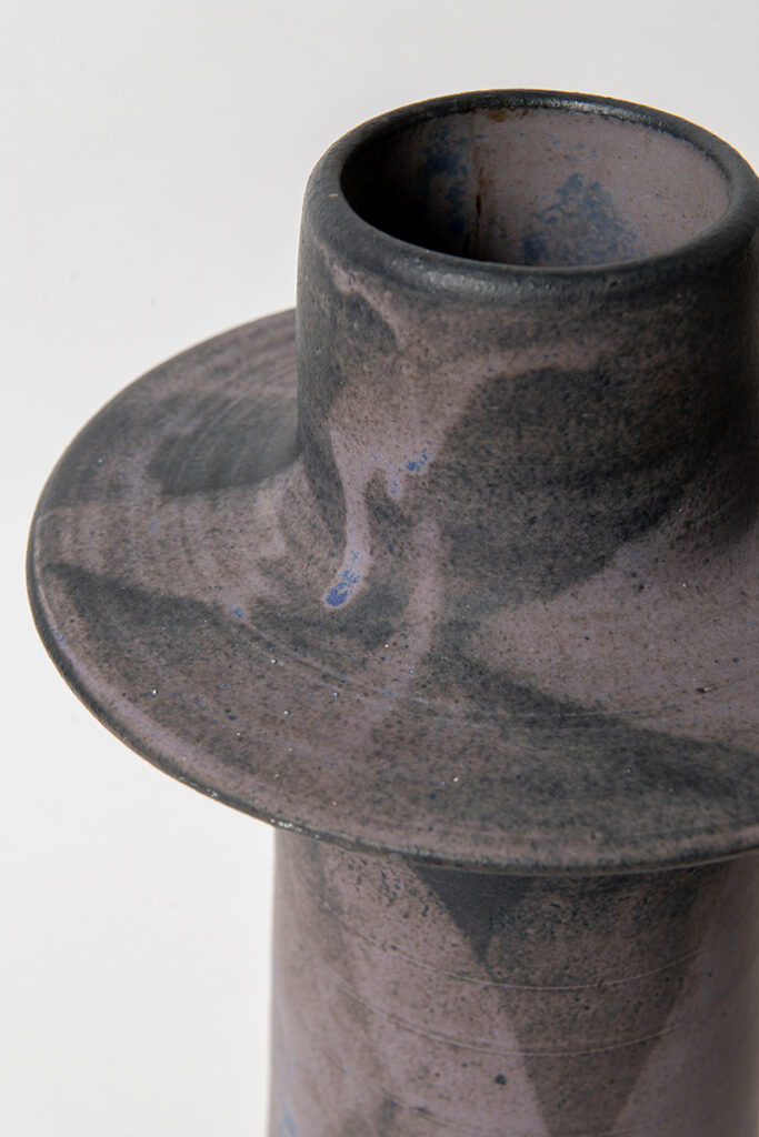 From 1961, he worked as an independent potter within the family business, where he developed new glazes and decorations, such as the band decor on the ‘Ringeling’ dinner service and the ‘Rondom’ dinner service. In 1979, he established his own studio in Leerdam to focus on unique ceramic objects and collaborations with other artists. His work is characterised by a combination of functional and free forms, drawing inspiration from geometric compositions and sometimes surrealistic elements.