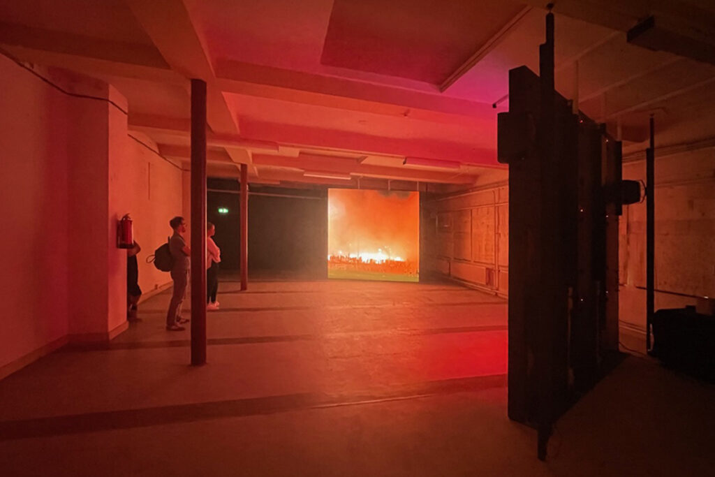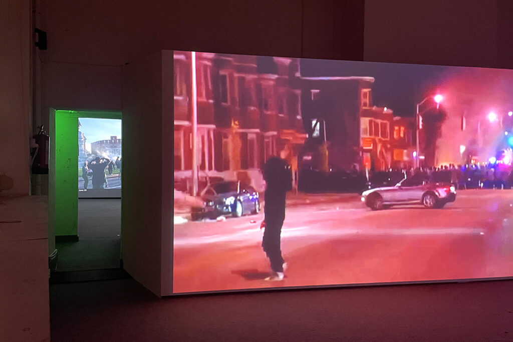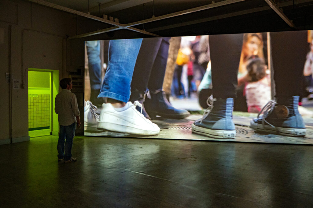 Twenty darkened exhibition spaces resonate with the sound of thousands of demonstrators, sirens, soundtracks, megaphones and chanting in many languages, expressing a palpable sense of urgency, despair, anger and solidarity. The powerful images lay bare confronting acts of violence and injustice.