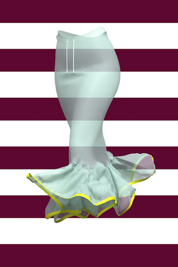 The students have started their project with a contradiction – a personal observation in the world around them that shapes their thinking and making as a designer. Using virtual prototyping techniques, each of them developed a capsule collection of two outfits, in which they connect their making to cultural, economic or social issues.